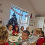 Przedszkole to dla dzieci drugi dom – miejsce, w którym czują się bezpiecznie, radośnie i wspólnie przeżywają ważne chwile. Dlatego również tutaj świętowaliśmy Wigilię, która wprowadziła wszystkich w radosny, świąteczny nastrój. Był to wyjątkowy czas pełen ciepła, wspólnego kolędowania oraz rozmów o bożonarodzeniowych tradycjach i zwyczajach. Spotkanie sprzyjało integracji całej społeczności przedszkolnej i było pięknym przygotowaniem do nadchodzących Świąt Bożego Narodzenia. Ten wyjątkowy czas pozwolił dzieciom poczuć ciepło, bliskość i magię Świąt także w przedszkolnych murach.
